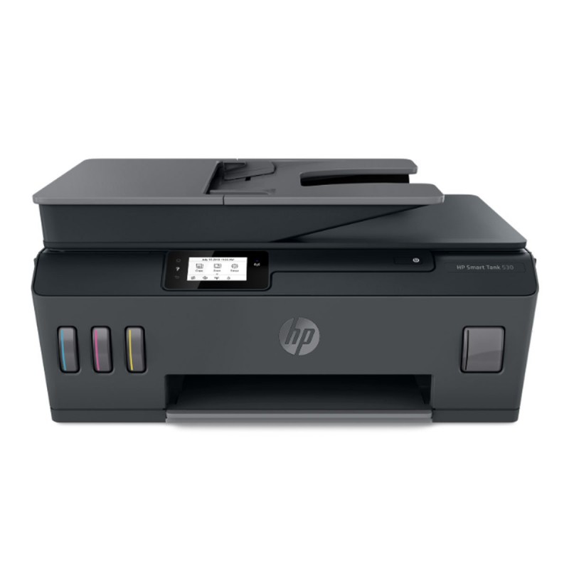 La HP Smart Tank 530 es una impresora “todo-en-uno” inalámbrica que combina un sistema de tanque de tinta recargable, conectividad WiFi de doble banda, impresión móvil (HP Smart, AirPrint, Mopria), y alimentador automático de documentos (ADF) para copiado/escaneo. Tiene una velocidad de impresión hasta ~11 ppm en negro ISO (hasta ~5 ppm en color ISO) y un ciclo mensual recomendado hasta ~400-800 páginas. Sus dimensiones la hacen apta para espacios reducidos, y su peso ligero (6,19 kg sin embalaje) facilita su instalación.